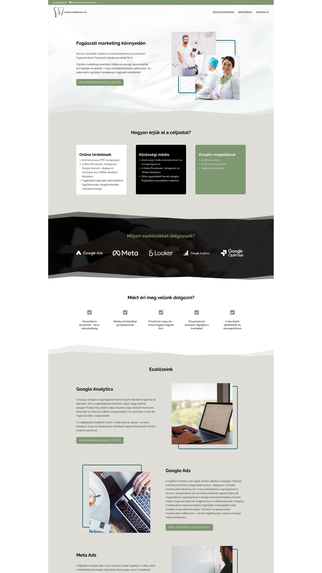 Szabadúszó PPC-szakemberek, akik szerettek volna közös projekteket vállalni, kifejezetten fogászati rendelőkre specializálódva. Egyszerű, letisztult, tárgyilagos oldalt kértek, a design és a felépítés volt a feladatom.